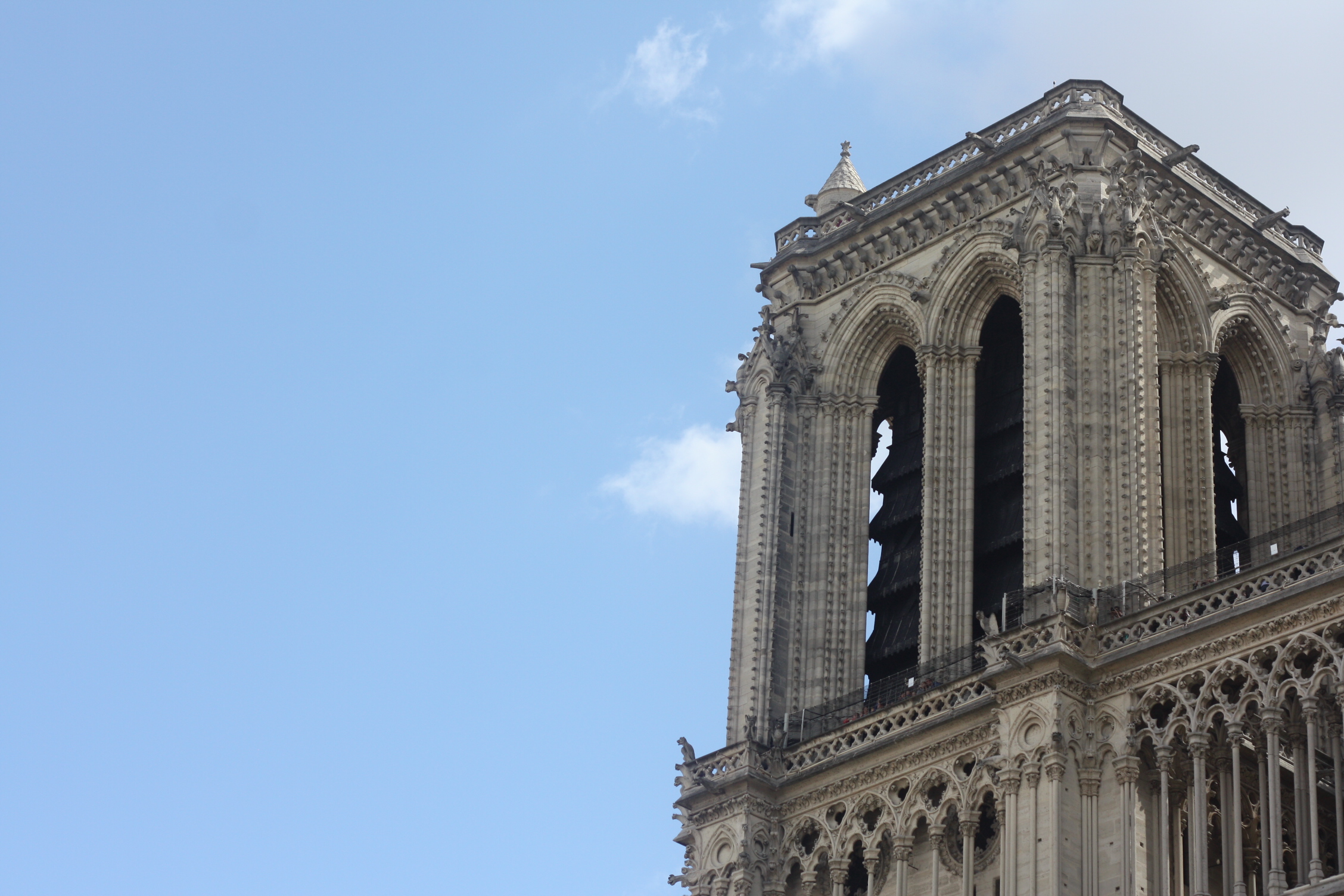 세계 1차 2차 대전에도 무너지지 않고 굳건히 자리를 지킨 노트르담 대성당이 한순간에 불에 타오르게 되었다. 엠마뉴엘 마크롱 프랑스 대통령은 이번 화재를 두고 "끔찍한 비극"이라 일컬었으며 많은 시민들이 눈물을 흘리며 비극을 함께 슬퍼하고 있다. 그렇다면 이번 화재의 원인은 무엇일까? 관계자들에 의하면 최근 진행 중이던 내부 보수 공사와 이번 화재가 연관될 가능성이 높다고 한다. 다행히 성당의 기본 구조틀은 안전한 상태로 보존되었지만 성당의 높은 첨탑이 있는 지붕이 불 탔으며 성당 내부의 스테인드글라스가 채워진 창이 부숴졌다. 불행 중 다행인 것은 이번 내부공사를 진행하기 위해 성당 전면에 있던 조각상들은 잠시 옮겨진 상태였기에 이는 보존이 된 것으로 확인된다.